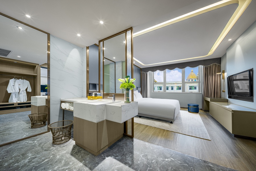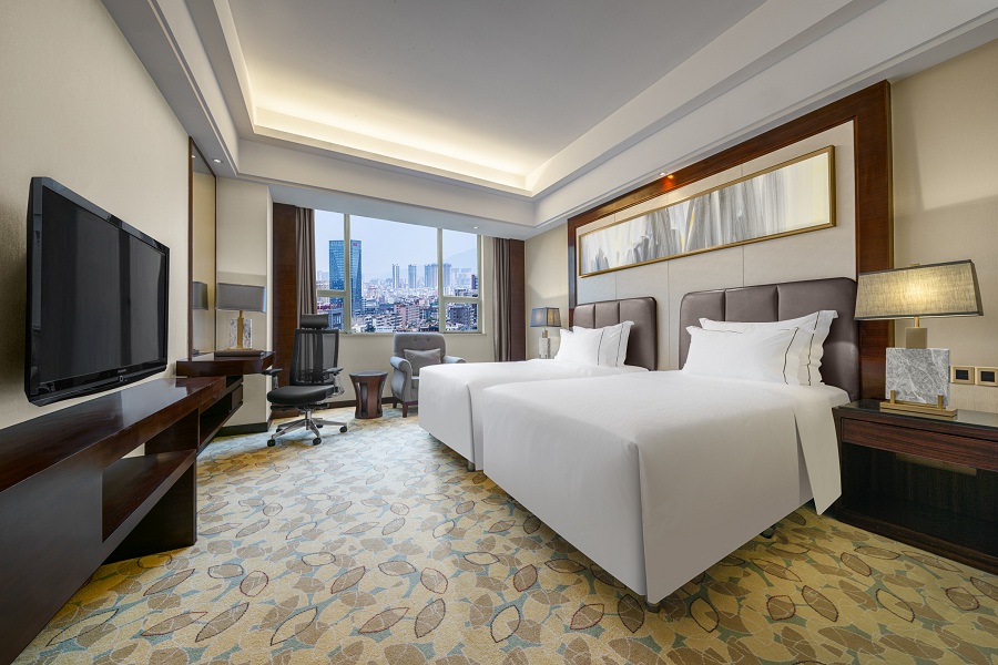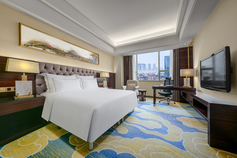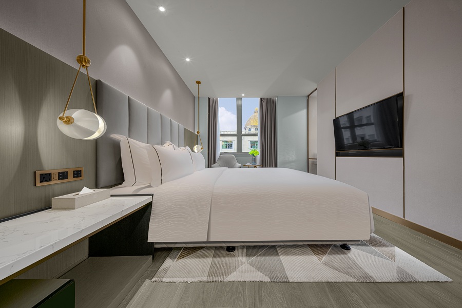 酒店拥有不同种类、风格各异、装修时尚高雅的健康睡眠客房280间,所有房间都配有国际、国内卫视电视频道、国内国际直拨电话、高速宽带上网接口、免费无线WiFi、迷你酒柜、私人保险柜、科勒洁具、直饮水、慕思健康床垫、鹅绒被、香薰睡眠枕……让您享受舒适与便捷,保证你有高品质的睡眠,绝对物超所值。酒店豪华套房庄重高雅,雍容绚丽,提供24小时贴身管家服务,尽显您尊贵的身份和超群的品味。
