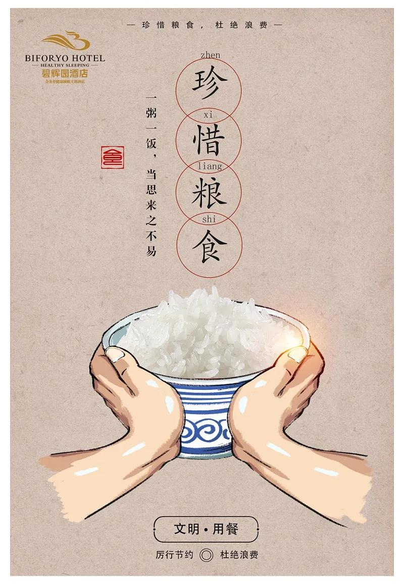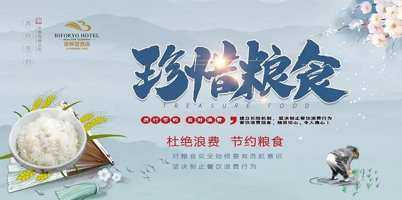 勤俭节约是中华民族的传统美德,节约粮不但是对劳动者的一种尊重,也是我们对于社会应有的一种责任。认识浪费粮食的严重性、珍惜粮食的必要性,牢固树立勤俭节约意识和粮食危机意识,使“节约粮食,杜绝浪费”成为每个员工的自觉行为,在此,碧辉园酒店向全体员工发出以下倡议: