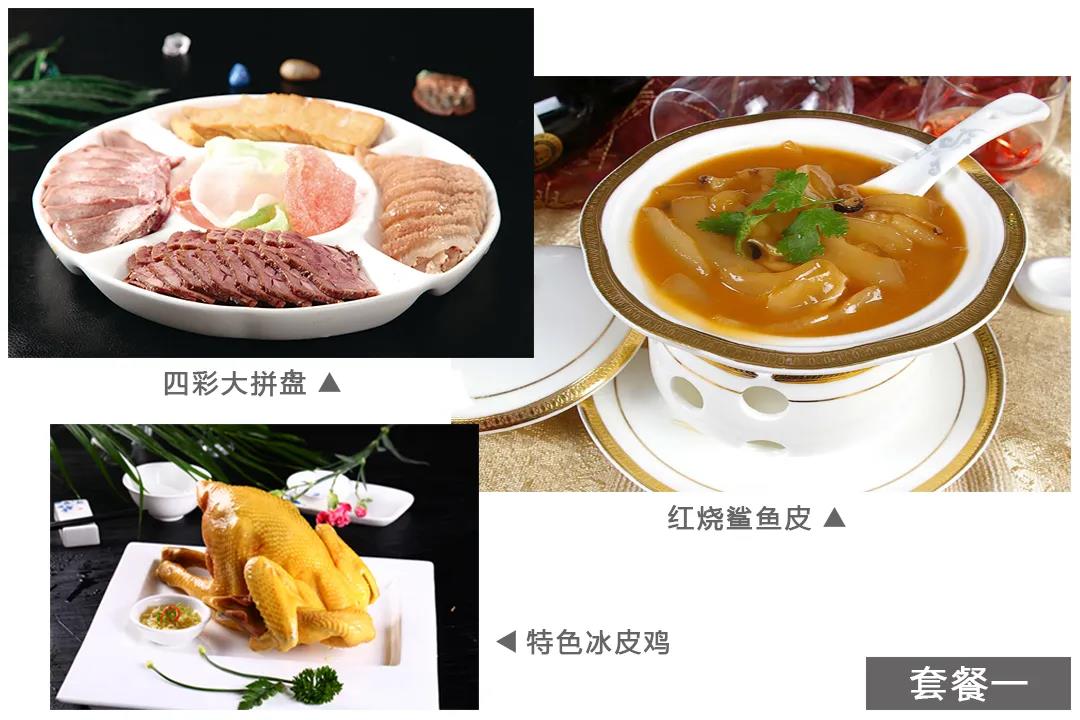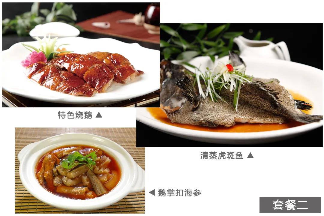 套餐二:四彩大拼盘、百合蒸龙虾、特色石榴鸽、酱油王大连鲍、